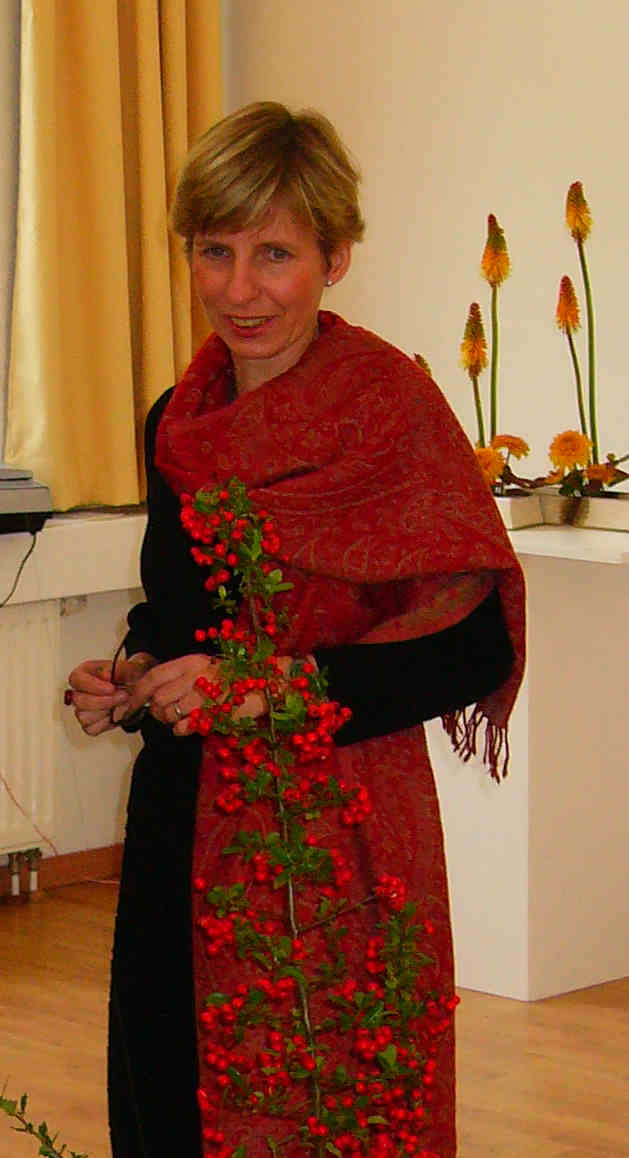 Irgendwann wählte ich einen Ikebana-Kurs an der Urania in Potsdam bei Karin Schreiber. Nach reiflicher Überlegung fing ich in ihrem Studio in Berlin/Wannsee meine Ausbildung an. Mein erstes Zertifikat erhielt ich im Dezember 1998.Inzwischen habe ich mein Lehrerdiplom erworben. Ich beabsichtige vierteljährlich mit Kursen und Workshops interessierten Personen diese Kunst weiterzugeben. Zur Teilnahme an Lehrerseminaren und an Ausstellungen habe ich ein starkes Interesse. Auch möchte ich mit anderen Ikebana-Schulen bezüglich eines Erfahrungsaustausches und der Erweiterung meines Ikebana-Wissens in Kontakt treten.