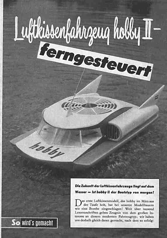 Weihnachten 2001 unternahm ich den Versuch auch meinen Sohn Fritz für das Thema Modellbau zu begeistern. Aus einer alten HOBBY-Zeitschrift meines Vaters hatte ich einen Bauplan für ein ferngesteuertes Modell eines Luftkissenbootes, welcher mich schon als Junge fasziniert hatte. Damals sind mein Vater und ich nie zu einer Umsetzung des Modells gekommen. Also sollte Versuch zwei folgen.